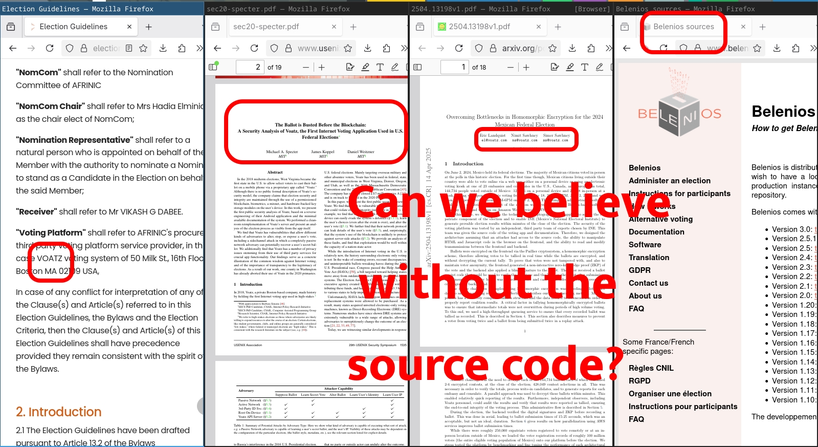 In first place, "Can We Believe Without the Source Code?" by